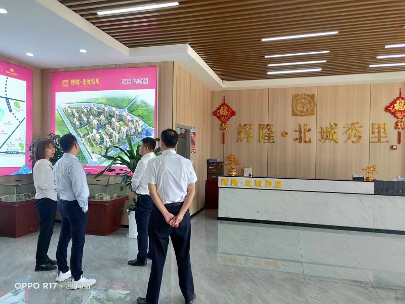 王中天一行首先实地察看了安庆北城秀里营销中心,项目负责人详细介绍了项目规划建设、销售概况及各项工作开展情况。