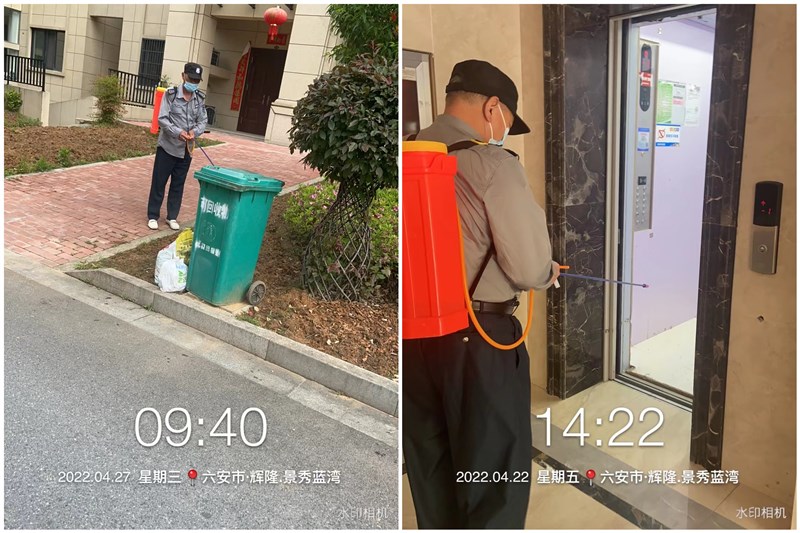 疫情期间,捷迅物业严控群体活动,减少人员聚集,积极配合疫情防控部门封闭管理的要求,尽最大可能减少出入口数量,对进小区人员扫两码测体温,施工人员出入小区凭72小时核酸阴性证明,劝导广大业主非必要不返回霍山,返回霍山的人员主动向村委报备。每天对公共区域的楼道、电梯、门卫室、垃圾桶等共用部位和设施设备清洁消毒,并增加消毒频次。